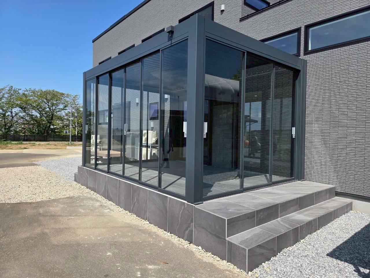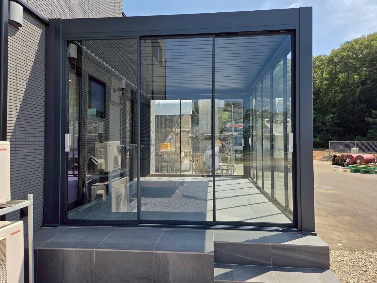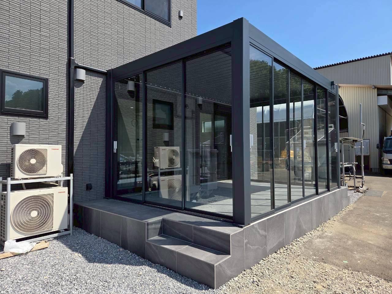 スタイリッシュなブラックフレームと大開口のガラスがつくる、モダンなガーデンルーム。