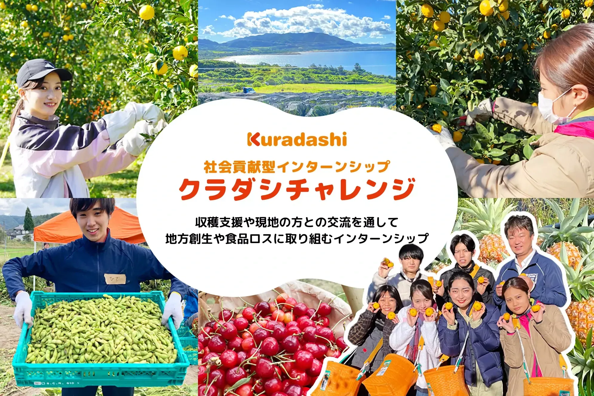 「ソーシャルグッドカンパニーでありつづける」というミッションを掲げるクラダシ。その理念を象徴する取り組みの一つが、社会貢献型インターンシップ「クラダシチャレンジ」です。これは単なる農業体験プログラムではありません。日本の食と地域の未来を見つめ、フードロス削減・地方創生・次世代育成という3つの課題に、学生と地域が手を取り合って挑む、クラダシ独自のソーシャルグッド活動です。