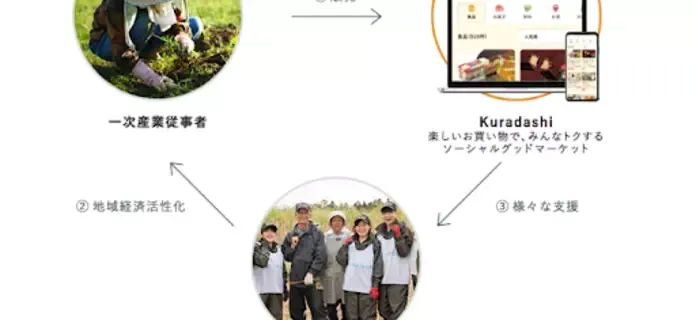 この活動は、ソーシャルグッドマーケット「Kuradashi」の売上の一部を原資とする「クラダシ基金」によって支えられています。さらに、学生が収穫した作物をKuradashiで販売し、その売上が次のクラチャレの活動資金となるサーキュラーエコノミー(循環型経済)を実現。お買い物が社会貢献活動を支え、その活動がまた新たな価値を生み出すという、ソーシャルグッドの輪を社会全体に広げています。