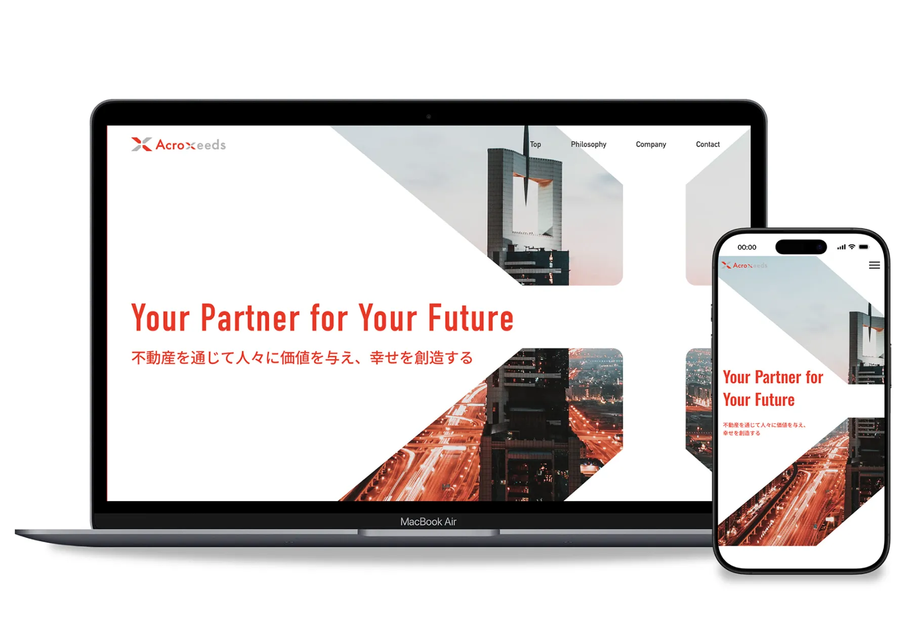 ブランドコンセプトの策定からVI開発まで担当。不動産という差別化が難しい業界での新規立上げという条件に対して、寄り添う姿勢と信頼感と期待感という情緒的価値を意識した。そこから、「Your Partner for Your Future 不動産を通じて人々に価値を与え、幸せを創造する」というブランドコンセプトを開発。ブランドコンセプトを中心に各種クリエイティブを制作した。