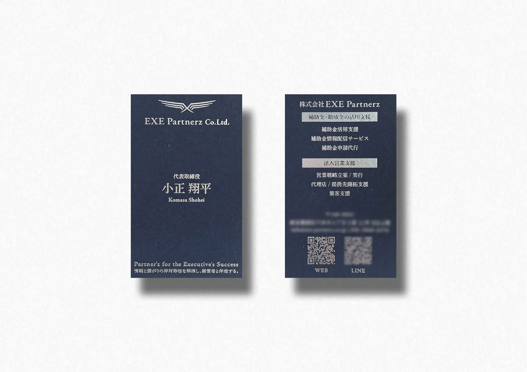 ブランドコンセプトの策定からクリエイティブ制作まで担当。「経営者に伴走し、情報の非対称性を解消する」というブランドコンセプトに加え、社長様の名前の一部である「翔」という文字から、経営者を飛翔させる翼のイメージで制作。信頼と貢献を想起させるデザインとなった。