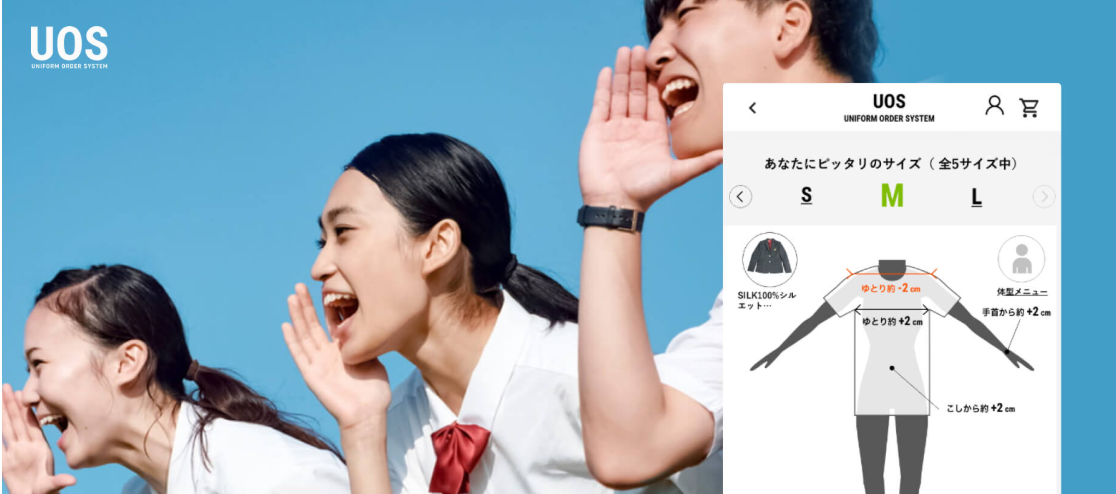 UOS(ウオス) は、制服メーカーや学校関係者が行う採寸・オーダー集計業務をDX化するサービスです。サイズレコメンドエンジン「unisize」を搭載し、スマートフォンで撮影した全身写真からAIが身体を測定してリモート採寸を行います。さらに、ECサイトを持たない販売店向けには、商品登録・採寸・自動集計・決済・購入完了までを一貫して行える仕組みを提供。利便性向上のため、管理画面や結果画面の改善も進められています。