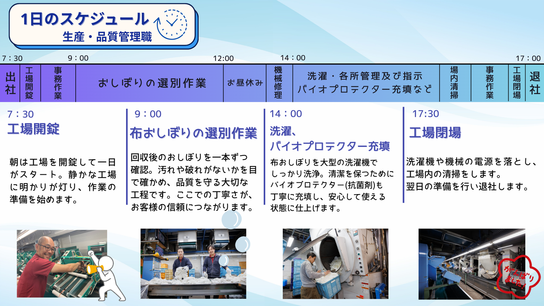 工場での丁寧な洗浄、ルート営業の毎日のコミュニケーション、スタッフ同士の支え合い…。