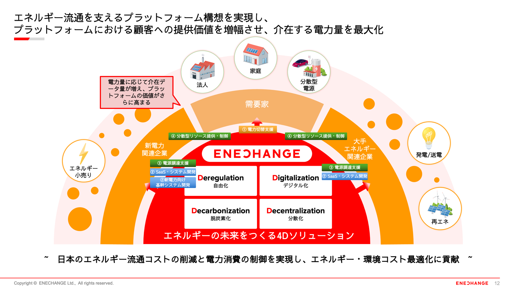 当社は、エネルギー流通を支えるプラットフォーマーとして、エネルギーの4Dを推進し、日本のエネルギー・環境コストの低減を実現してまいります。加えて、同成長戦略は、エネルギー流通プラットフォーマーとしての1階層の成長とEV充電事業の将来成長の2階層となっております。