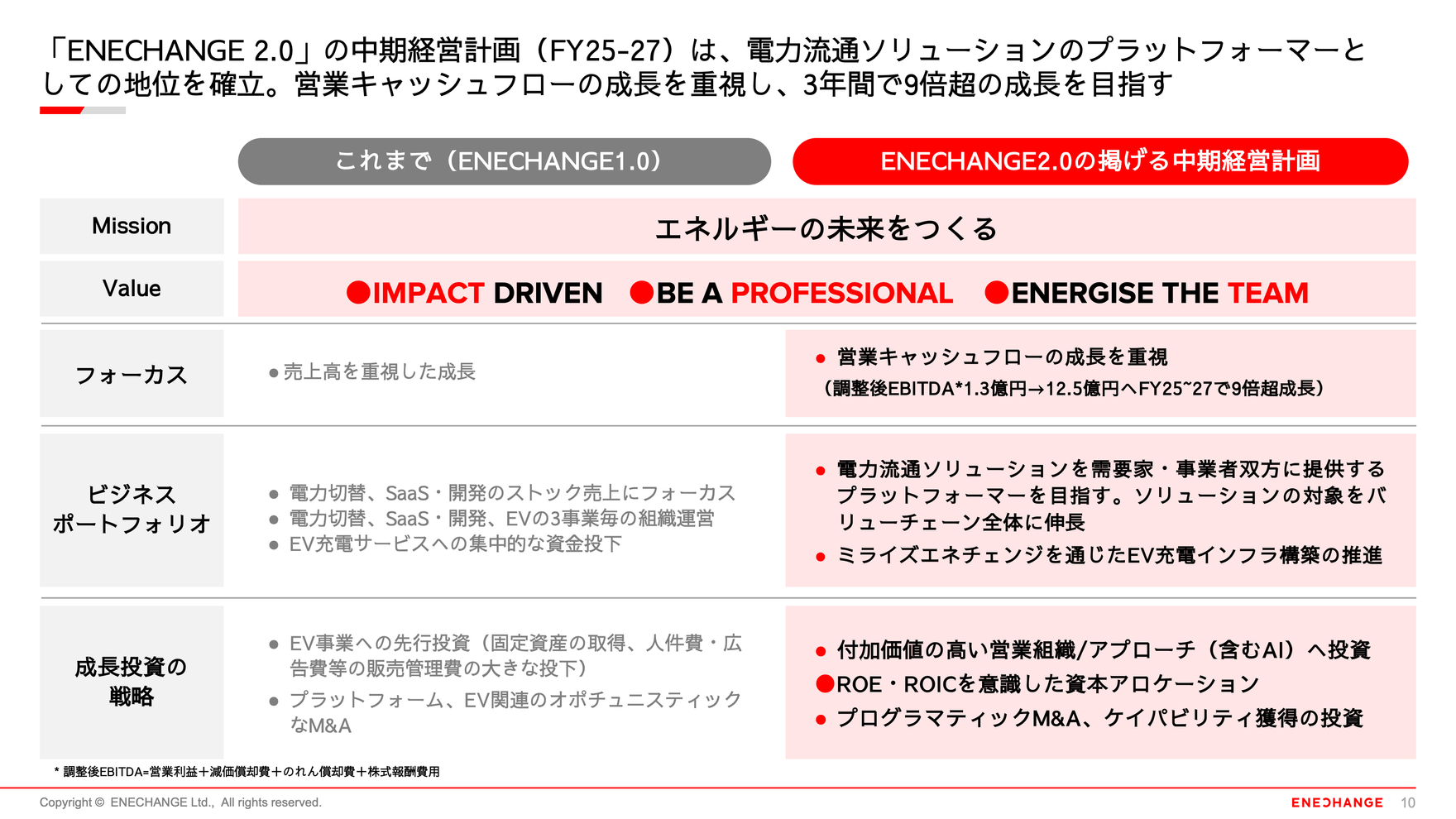そのような中、当社は、2025年6月23日に「事業計画及び成長可能性に関する事項」において、「ENECHANGE2.0」成長戦略を公表いたしました。