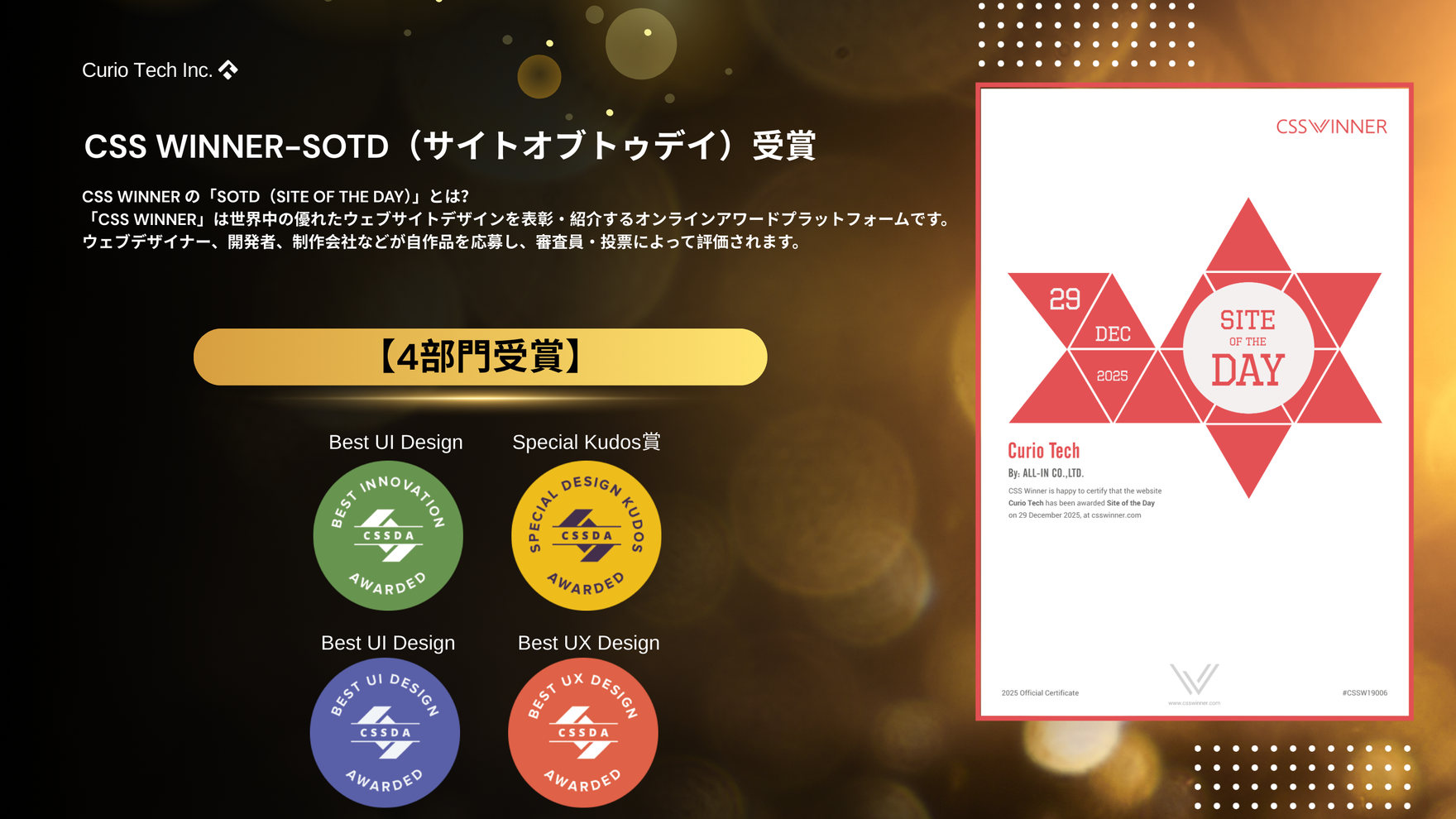 受賞掲載サイト:https://www.csswinner.com/details/curio-tech/19006