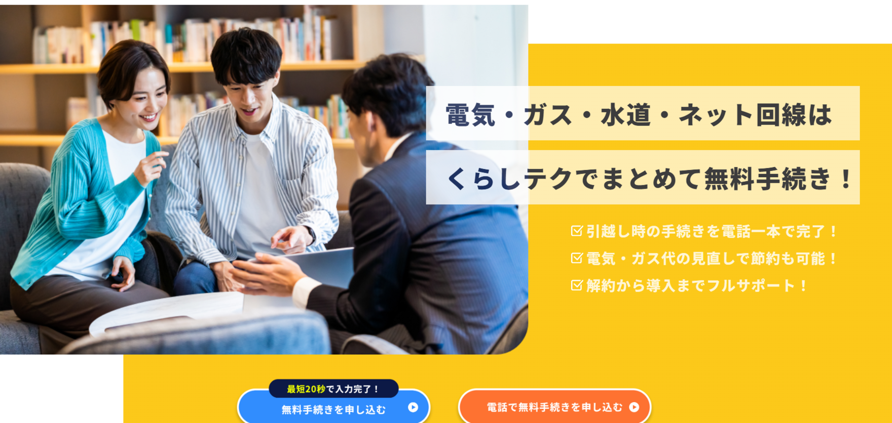 くらしテクは、全国の電気・ガス・ネット回線会社と提携し、 生活に欠かせないライフラインの手続きを安心して整えられる環境を提供しています。 各提携企業との連携を活かし、お客さま一人ひとりに最適なサービスをご案内いたします。