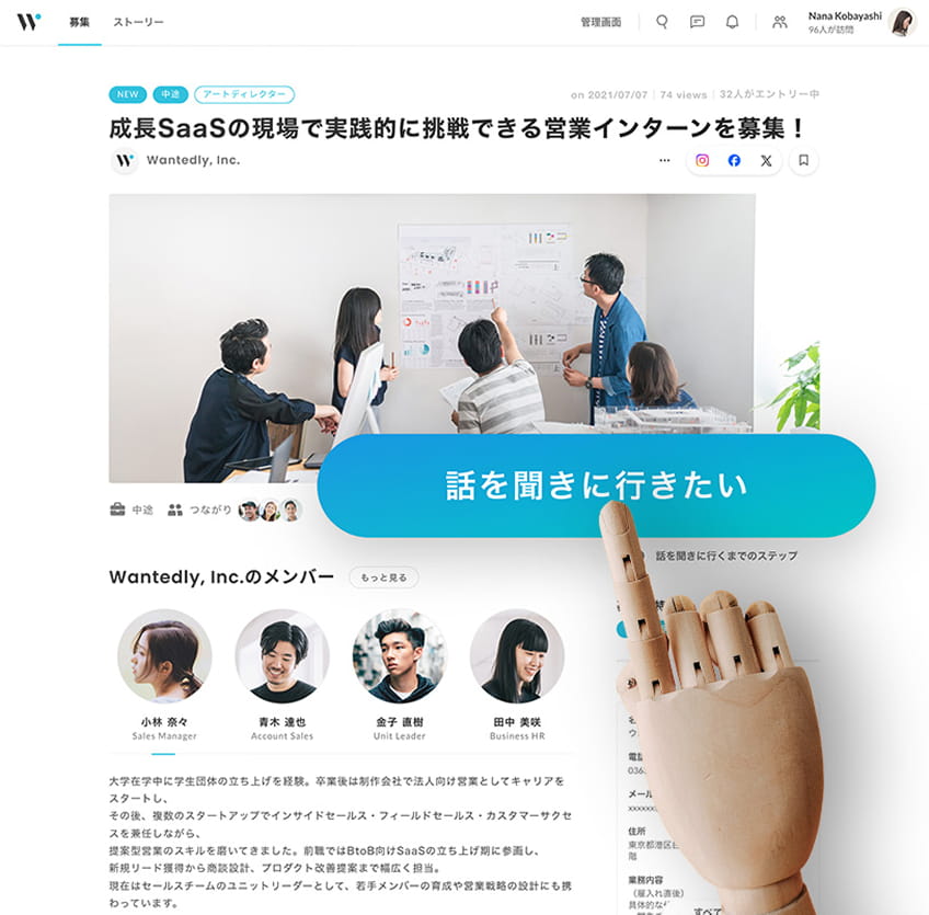 気になる募集を見つけたら、 「話を聞きに行きたい」から応募しよう。