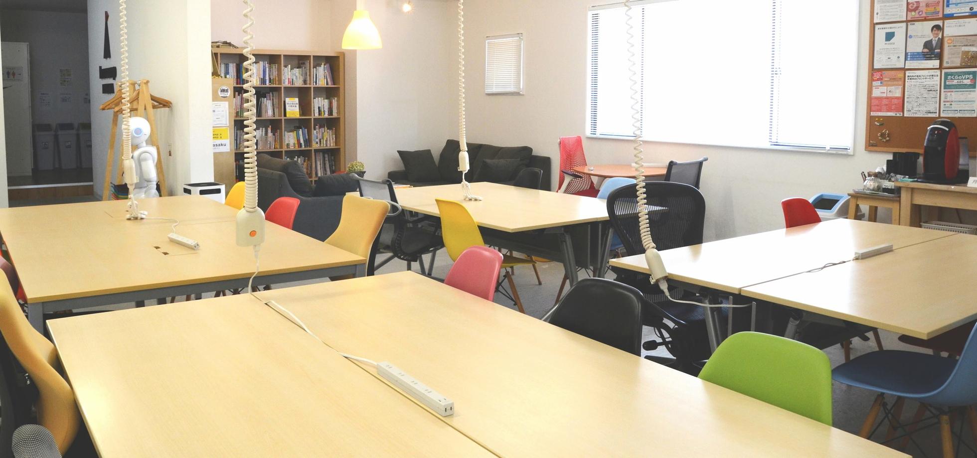 こちらはメインスペース。コワーキング、打ち合わせでご利用いただきます。