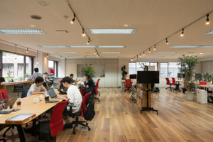 執務スペースはフリーアドレス。業務の効率化、コミュニケーションの活性化を重視しています。