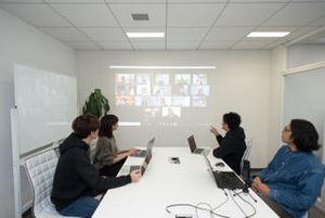 1日1回 定例雑談MTGの風景です。会議室にみんなが集まっていましたが、今はオンラインでMTGしています。