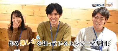 ーーーーーーーー ▼フラットな社風 ーーーーーーーー ライトコードは、代表や取締役との距離が近い会社です。 拠点同士の交流会を開催したり、働き方の希望を叶えたりと、ボトムアップで制度や組織を作っており、メンバーの「こうしたいという思い」を実現しています。 「週2日出勤して、あとはリモート勤務とかできるようにしたいよね」 「いや、毎日リモート勤務できる環境が理想」 「満員電車乗りたくないから、フレックスが良いな」 「女性エンジニアも安心して働けるような環境を作りたいよね」 「そう、男性エンジニアも育休取得できたりね」 そんな意見を吸い上げ、最近では、 「フルフレックス制」「フルリモートワーク」「ゲーム機の設置」 が実現しました。 また、残業嫌いの社員が多いため、残業もほとんどありません。(代表も残業嫌いです) ただ甘やかしているのではなく、社員がストレスを抱えず、「最高のパフォーマンスを発揮して欲しい」という代表の願いでもあります。 環境、新事業、ワークスタイルも全員で作っていける、ライトコードはそんな会社です。 ーーーーーーーーーーーーーーーーーー ▼飲み会でも、IT技術の話で盛り上がる ーーーーーーーーーーーーーーーーーー 弊社メンバーの平均年齢は約30歳。 経営陣をはじめ、メンバー全員が堅苦しいことは苦手。 社員同士も、とても仲が良く、風通しも良い会社で、カジュアルな雰囲気で何か溜め込むような環境ではありません。 また、飲み会でも、やっぱりエンジニア同士。 話題は「IT技術の話で盛り上がる」ことも多く、そんな、技術が大好きなメンバーが揃っています。 そんなライトコードのメンバーは、業務中もチャットで連絡をとりあい、分からないことは先輩エンジニアに気軽に教えてもらったり、仕事以外の話も密にコミュニケーションを取れる環境にあります。 また、月に一回は勉強会を開催したり、モクモク会、女子会、「みんなで福岡メンバーを見に行こうツアー」など、東京オフィスと福岡オフィスのメンバーとの親睦会を楽しんでいます。 ライトコードは、「チャットでしか話したことがない」という職場環境ではなく、横のつながりも大事にしたいと考えている会社です。 ーーーーーーーーーーーー ▼あなたの力が必要です! ーーーーーーーーーーーー 会社としての規模も急成長中の弊社ですが、まだまだ柔軟に変化し、大きくなっています。 しかし、山で言えば、まだまだ三合目。 そのため、あなたには「コアメンバー」として、会社を支えるメンバーになって欲しいと考えております。 あなたの力で、ライトコードをますます面白い会社にしていただきたいのです。 そして、会社を大きく成長させ、エンジニアにとっての最高の会社を実現させるべく、 大きな山の頂上を目指し、一緒に登っていきませんか?