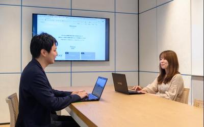 Gunosy社員の専用エリアは完全フリーアドレス制で、全席にディスプレイを完備しています。