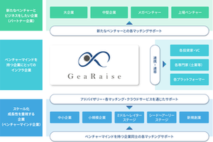 GeaRaiseはベンチャーマインドの高い企業に対する総合窓口として、当社ネットワークを通じた各インフラ・ワンストップサービスを提供していきます。これからのベンチャーマインドを持つ企業にとってのエコシステムを創り上げることを構想しています。
