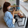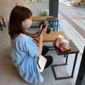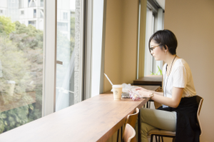 窓際のカフェスペースが大人気!席移動も自由です。