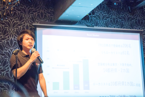 サービスのプレゼンをする代表