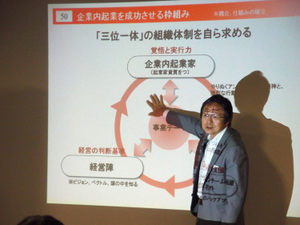 イントレプレナー塾の様子です。当社代表が初回の講義を務めます。