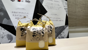 [ 福利厚生 ]毎月3㎏のお米がもらえるプロジェクト。人気の福利厚生です!『淡雪こまち』はとても甘いお米ですよ。(写真:出口さん)