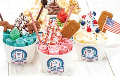 お好みのアイスクリームのベースにフルーツやスイーツを混ぜ込み、 くるくるとロールアイスクリームを仕上げたら、 トッピングとソースをデコレーションして完成です。  6種類のアイスクリームベースと、20種類のミックスイン、 40種類以上のトッピングをカスタマイズすれば、 食べるたびに違うフレーバーを無限大に楽しむことができます。