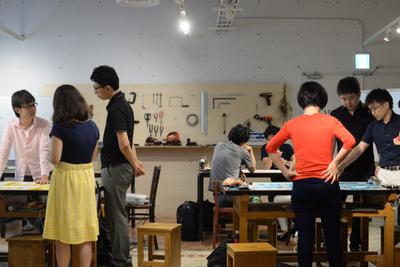 壁には、メンバーがDIYした本棚があり、建築やデザイン・組織・営業など幅広いテーマの本(時には漫画も)が置かれています。手に取り合いながら、お互いの興味について話すシーンもよく見られます。