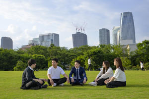 Manager/HR担当 福士雅也 (真ん中)。平均年齢24.5歳の若き仲間達と共に、20代前半でのIPOを目指している。。