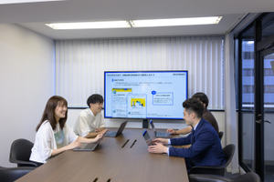 こだわりのオフィス勤務。チームの目標に向かい、一丸となって取り組む。