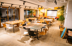 オフィスと同じビルにあるコワーキングスペースは、会員さまだけでなく社員も使用することができます。イベントの開催やドラマのロケなど、様々な用途で使用されています。
