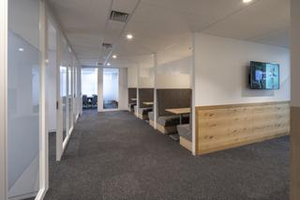 会議室やMTGスペースも複数用意しています。中でも大会議室は大きな窓で全面に日の光が入る設計になっていたり、MTGスペースやエントランスも広々とした作りにしていたり、全体的に開放感のあるオフィスです。