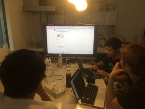 開発をモブ or ペア プログラミングで行い、知識や知恵を共有しながらやることもあります。(写真のときはiOS経験2名、PHP1名、非エンジニア1名)