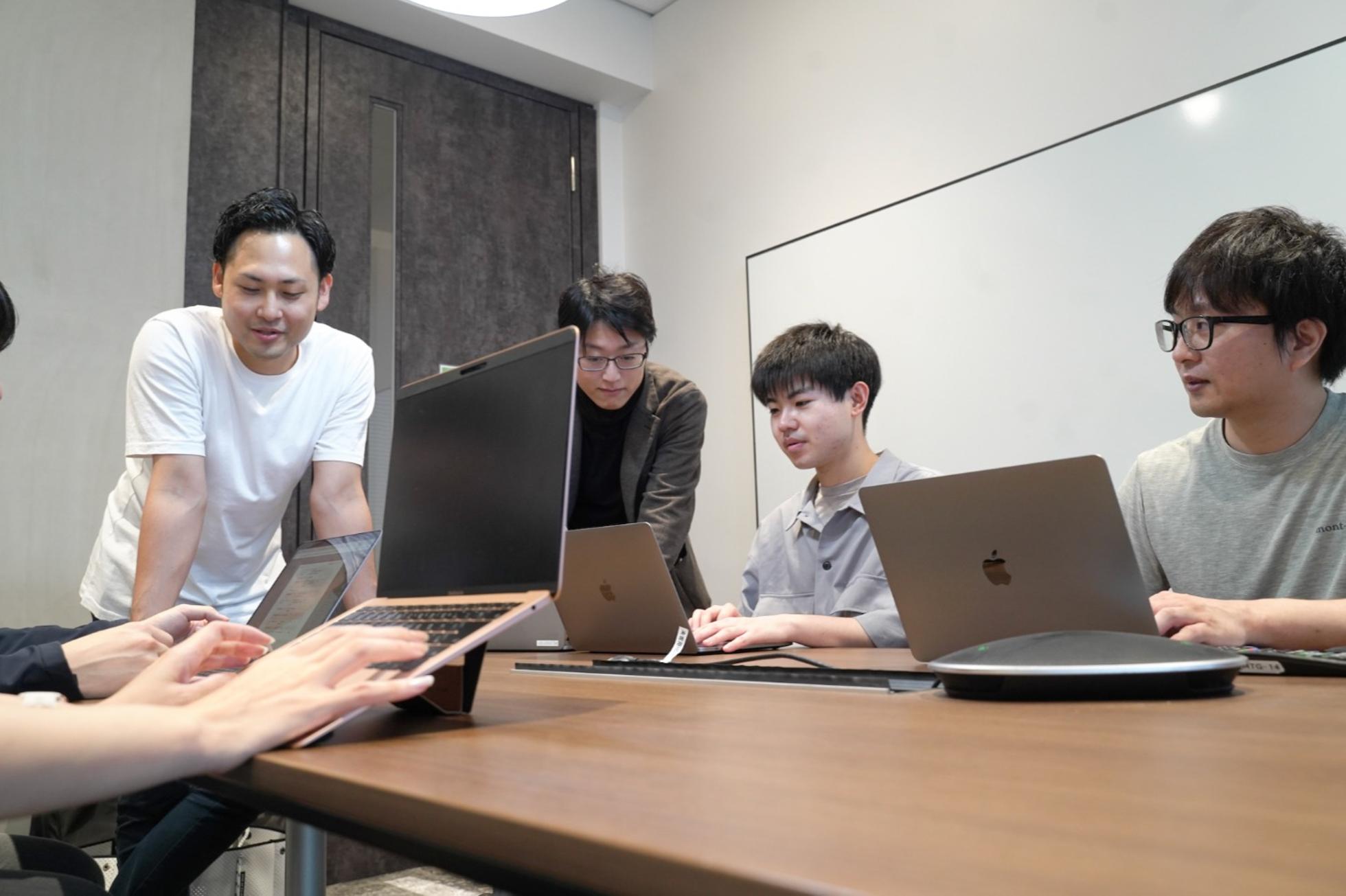 2023年に移転した新オフィス。顔を合わせることでチームを超えたコミュニケーションも多く、全体会議・チームのデイリーや日報などで情報共有の機会を大切にしています。