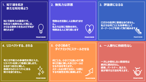 ■起業にいたったストーリー&一緒に働いてくれる方へ■ NTTDATA/アクセンチュア出身である江頭/片岡が企業支援を行う中で、コストや既存のビジネス商流上、良くも悪くもご支援できるお客様の幅に限界があると感じ、「まずは自分達として、この人は絶対助けてあげたいと思える人を助けられる会社を作ろう!」と思い、起業しています! 一方で、コンサルは上述のとおり「助けてあげたい」対象のお客様が主役となるビジネスのため、PeakVisor自身もしっかり主役になれるビジネスを行うため、PeakVisor自身の新規事業も実施中です!