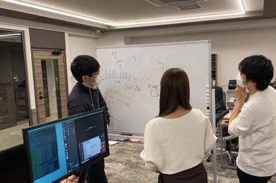 開発作業の様子。互いに意見を出し合って、より良いものを作り上げようと邁進しています。