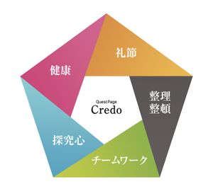 QuestP’age(クエストページ)5つのクレド!社員の心がけるべき信条や行動指針として設けています!この5つのルールさえ守ればあとはOK!各自思い思いの理想を叶えるために業務に臨みましょう!