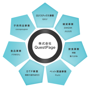 株式会社QuestP'age(クエストページ) と申します! \   わたしたちは、                      企画から物流までワンストップで行う      /    \      マーケティング会社です。   /      \                /       🔳食品事業 インターネットや実店舗で販売される食料品を開発・販売企画を行っています。 キャンプ芸人バイきんぐ西村氏監修 万能スパイス 『バカまぶし』『バカびたし』https://bakamabushi.com/ ひざつき製菓様コラボ『バカまぶしつな旨揚げ® ~ワイルドタンドリーチキン風味~ 』  https://onl.la/A2QYyxw ★Instagram https://www.instagram.com/baka_mabushi/?hl=ja ★Twitter  https://twitter.com/baka_mabushi ★Facebook https://www.facebook.com/bakamabushi           🔳雑貨事業 国内最大級、各種ECモールにて運営しています。 おしゃれで可愛いセレクトショップ【ZAKZAK】 https://www.rakuten.ne.jp/gold/goodszakka/ https://shop-list.com/women/brand/goodszakka/ ★Instagram https://www.instagram.com/zakzak.zakka123/        🔳子ども用品事業 オリジナル抱っこ紐『hugraku(ハグラク)』などを企画販売しています。 ベビー・キッズブランド【cocopoupon(ココプポン)】 https://www.cocopoupon.co.jp https://www.rakuten.ne.jp/gold/puttishop/ ★Instagram  https://www.instagram.com/cocopoupon_official/       🔳飲食事業  現在、福岡市内にて2店舗運営しています。 ①地元九州の厳選食材を中心に即興コースお仕立て(※紹介制) 【鮨 たがみ】https://terusushi.net/ @西中洲(老舗が立並び福岡のグルメ通に愛される街) ②九州玄界灘の潮風感じる厳選海鮮×糸島産とれたて野菜 【照鮨】https://terusushi.net/    @アイランドシティ(博多湾に浮かぶ先進的モデル都市)                    🔳ペット関連事業 福岡屈指の人気エリア「アイランドシティ照葉」でトリミングサロンを運営しています。 【Pet Salon & Hotel & Shop Putii(プッティ)】https://putti-pet.com/       🔳DTP事業 不動産・広告会社様の間取り図作成代行と業務の効率化をサポートしています。 早い!のに安くて安心!【間取り作成.com】  https://madorisakusei.com/       🔳ロジスティクス事業 自社通販で培ったノウハウを元に通販ビジネスの成功を支えています。 総合通販SKUから単品通販D2Cまで【Qロジ】 https://q-logi.com/       🔳Coming Soon …       \  わたしたちは、                     これからも「毎日をもっと楽しく、豊かに」する      /    \      商品・サービスを創出しつづけます!  /                            / _