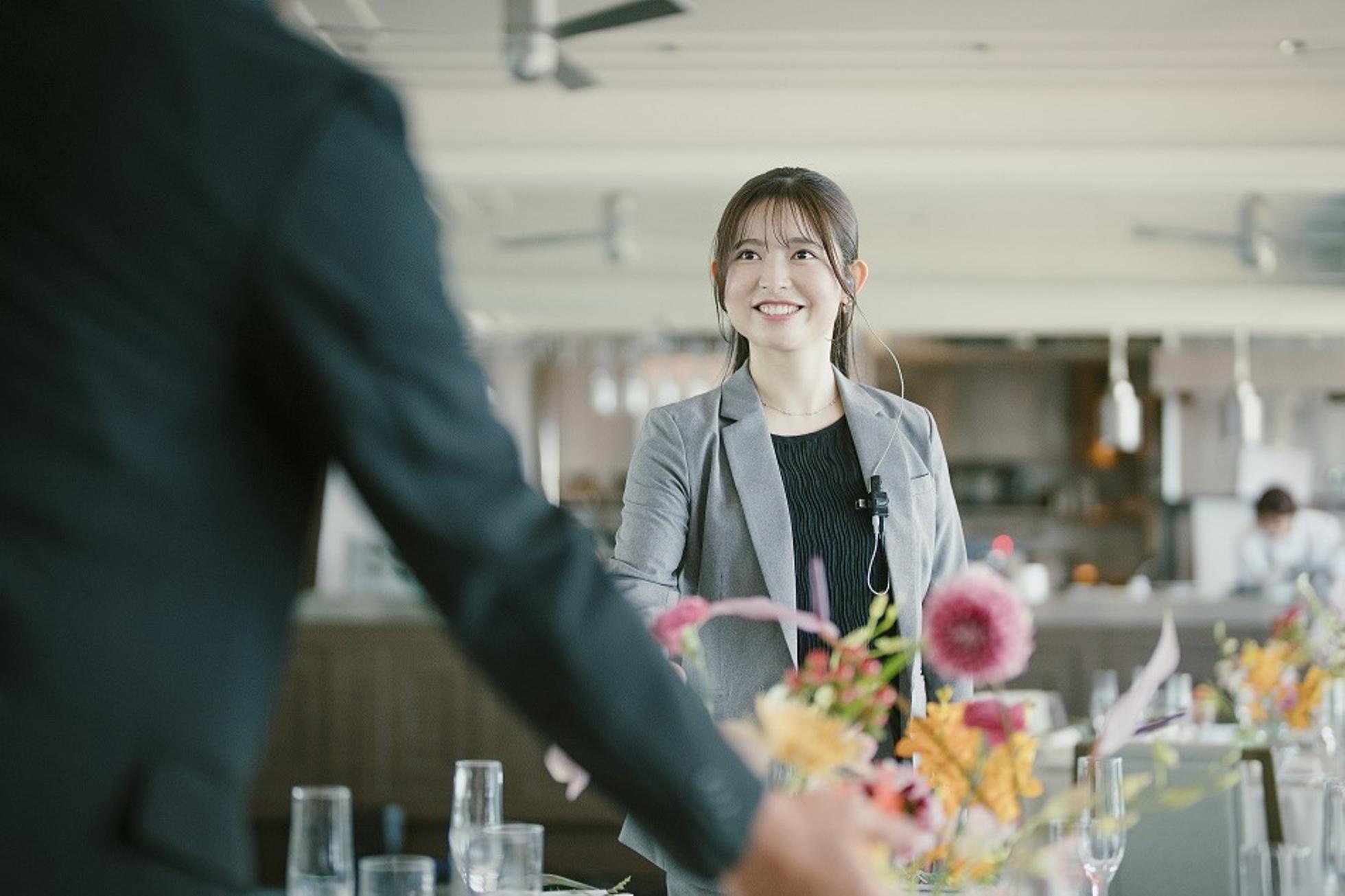 人生の節目であるご結婚式披露宴に携わることができるウエディングプランナー。どうしたら感動が生まれるのか新郎新婦様と一緒に考えながら当日を迎えていきます。毎日顔を合わせるような方々へも昨日とは違った一言を伝えれるような時間に。1人1人の「いい時間」を過ごしていただきたいです。