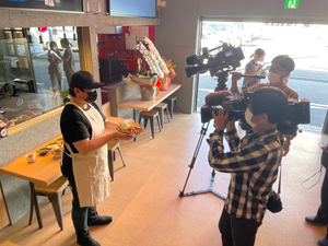 取材陣に囲まれる齋藤さん