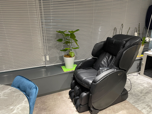 休憩スペースには、マッサージチェアを完備。一息つきたいときや仕事終わりなど、スタッフはいつでも利用可能です。