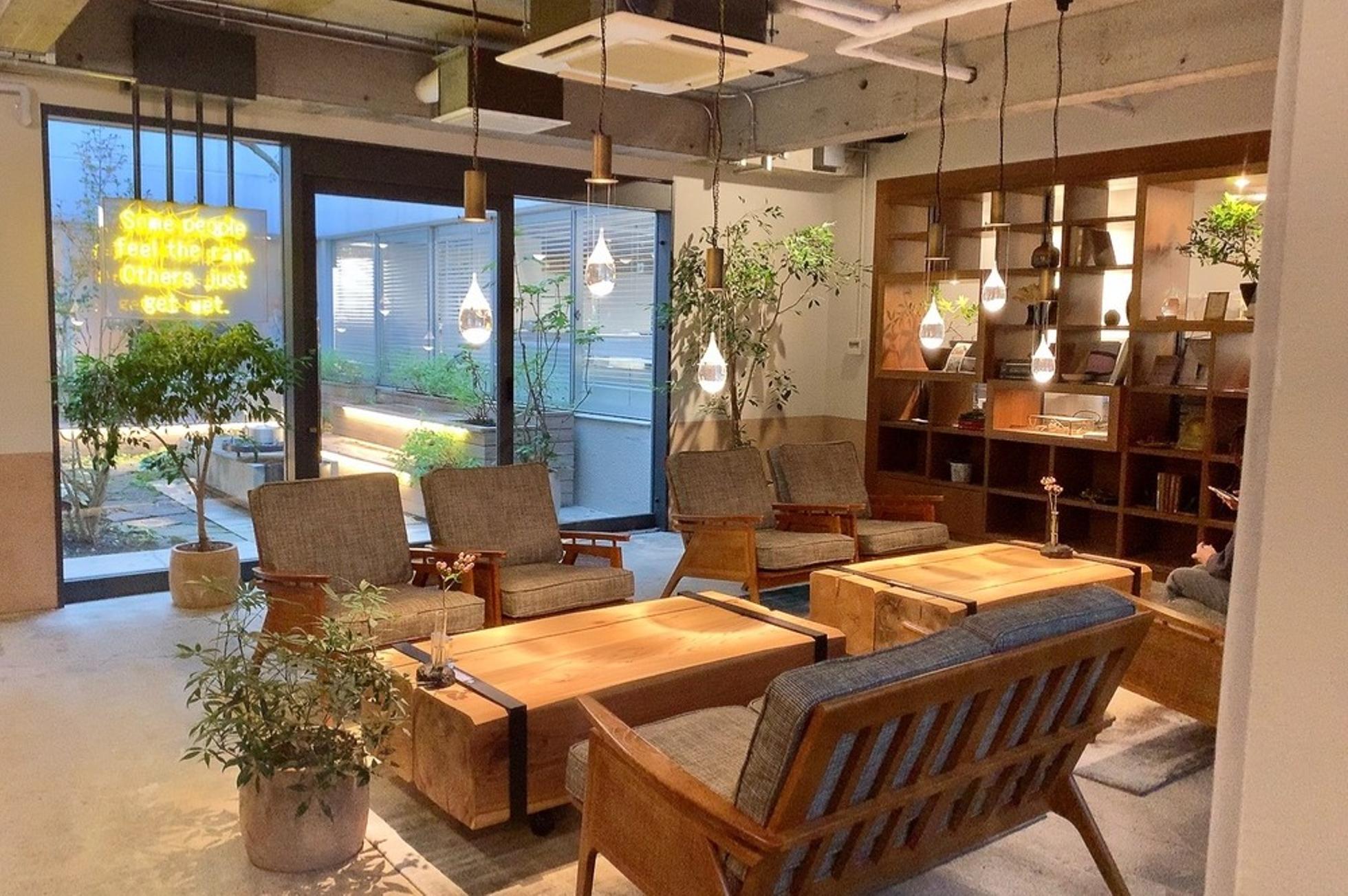 桜丘町の一角。リノベーションしたオフィスのエントランス。104号をお呼び出しください。近所に、おしゃれな店多い。