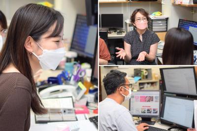 ロスゼロのアップサイクルブランド「Re:YOU」についてのミーティングの様子。社員、アルバイト関係なく、みんなが意見を言い合える風通しの良い社風です。