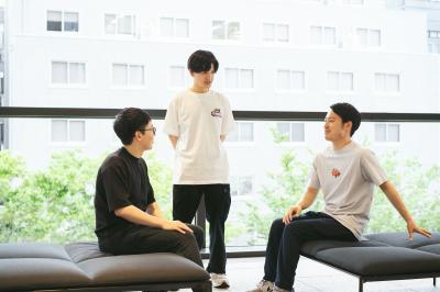 左から代表と取締役2名。3名とも新卒で株式会社じげんに入社した経歴を持つ事業会社出身者です。
