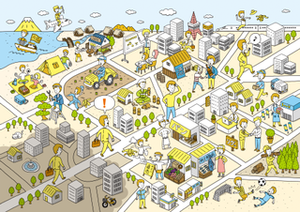 ビジョンを表現したイラストです。一人でも多くの人の「自分らしい生き方」をともに探し、 「何度でもチャレンジできる仕組み」を創っていきます。