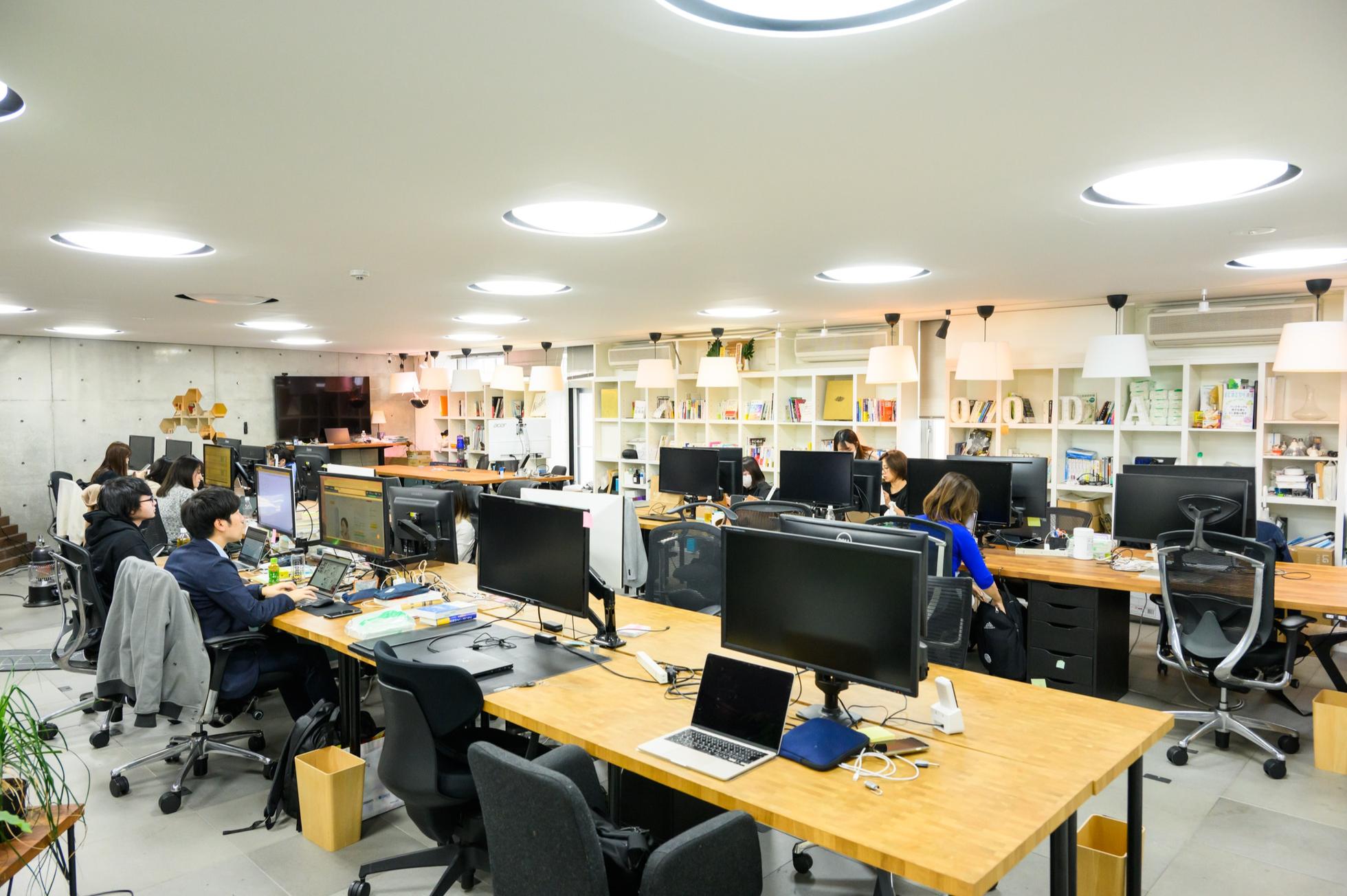 オフィスでは出社が基本。各所とのミーティングはオンライン・オフラインと使い分けています。