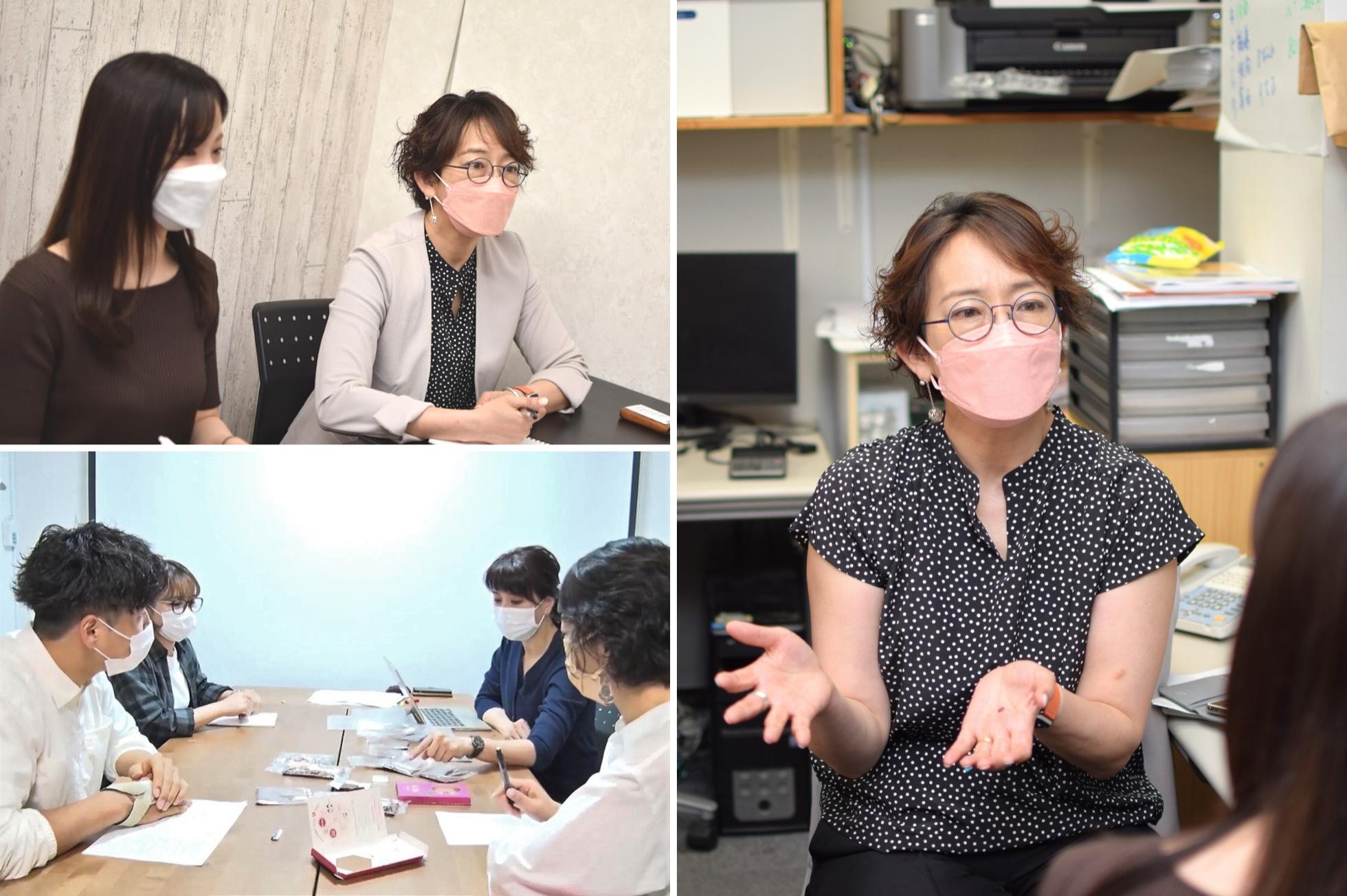 ロスゼロのアップサイクルブランド「Re:YOU」についてのミーティングの様子。社員、アルバイト関係なく、みんなが意見を言い合える風通しの良い社風です。
