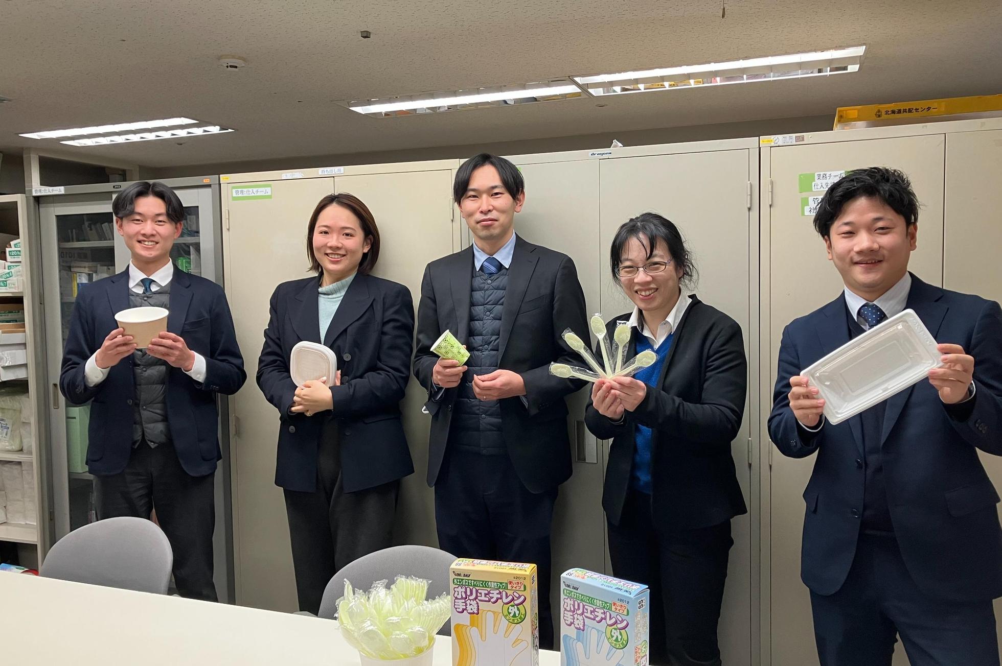 当社が扱う製品数は約10万点以上! 容器・ラップ・袋類以外にも、おしぼりやマスクなどの衛生資材、箸から梱包機器、さらにはランチバッグ・ランチボックスなどの生活用品まで幅広く取り扱っています。