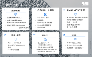 中国及び東南アジアの大手越境EC[T Mall国際][Kaola][LAZADA][Shopee]など、各モールからも評価を受け、ホワイトリスト取得や包括連携をし、ワンストップ(運営/物流/決済/マーケティング)での支援体制を整え、日本企業の海外展開を伴走支援しております。
