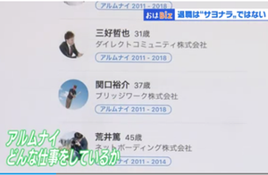 システムのUI(10月30日NHKおはよう日本/アルムナイ名簿画面)