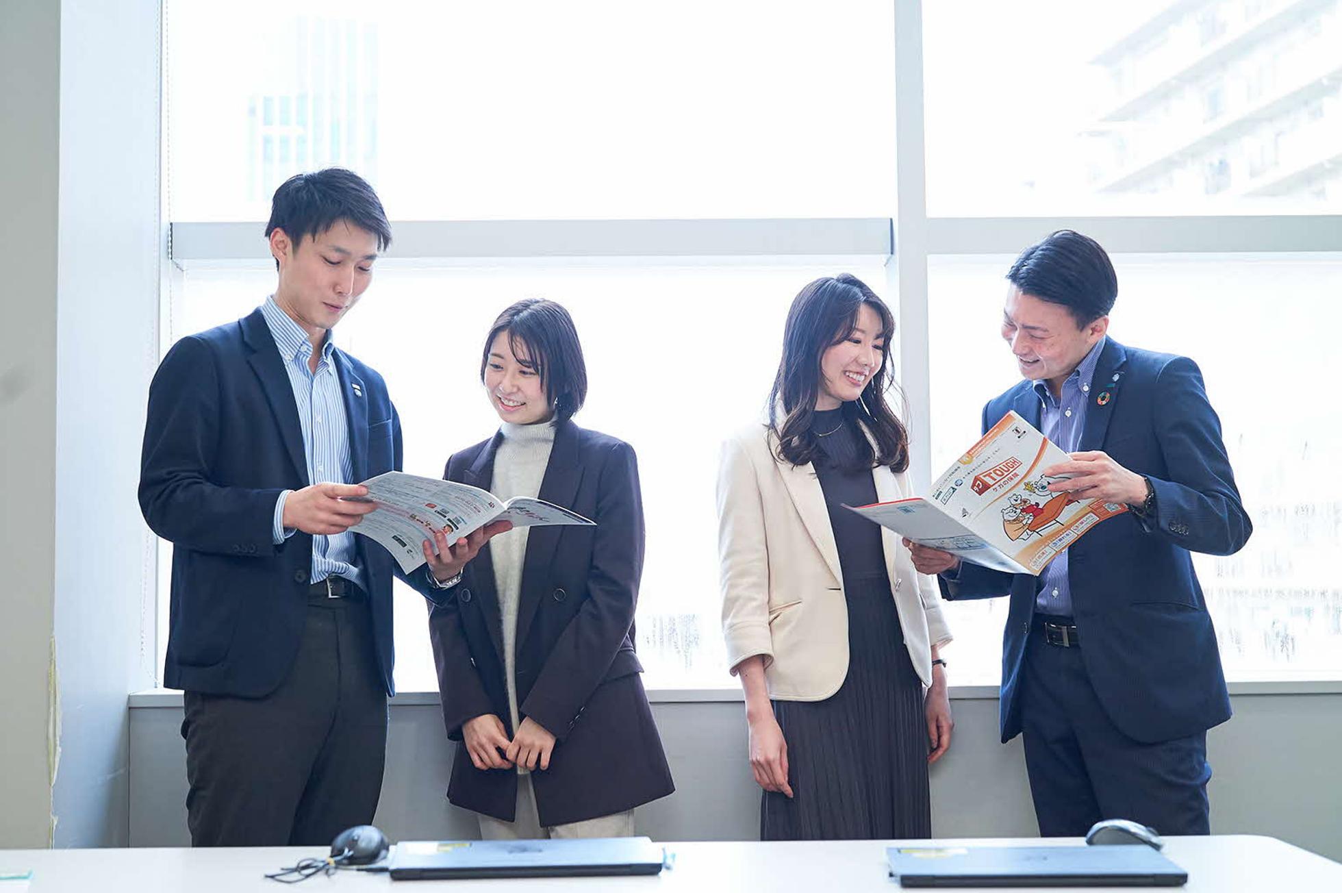 ▍行動指針 私たちのチームでは商品開発から商品の引受・推進を行っています。 ・売れるCSV×DX商品を開発して、社会・地域に貢献する 商品を開発して、商品の良さをお客さまにご理解いただけるよう、常にお客さまの気持ちに寄り添い、何が必要なのかを考え抜きます。 ・チームワーク&アウトプット 仕事はひとりで行わず、チームひいては会社全体で協力します。メンバー同士で学び、インプットしたことを世の中にアウトプットしていく。商品開発を担う私たちの役目です。 ▍一緒に働くメンバー 現在、約100名のメンバーで構成されています。若いメンバーも多く在籍し、さまざまな業務経験のバックボーンを持ったメンバーで構成されています。それぞれの専門性を活かしつつ、お互いを尊重しながら仕事を進めています。 ▍出社・リモートを併用したワークスタイル 本社は東京都渋谷区。リモートワークにも配慮しながら、業務を行っています。フレックス制度や産休・育休も取得可能です。お子様がいるメンバーも生き生きと働いており、仕事とプライベートはメリハリをつけて取り組むことができます。 ▍ユニークな研修制度が充実 OJTやトレーニーなどの一般的な研修の他、部内での勉強会などもご用意しています。他にも、さまざまな研修制度があります。