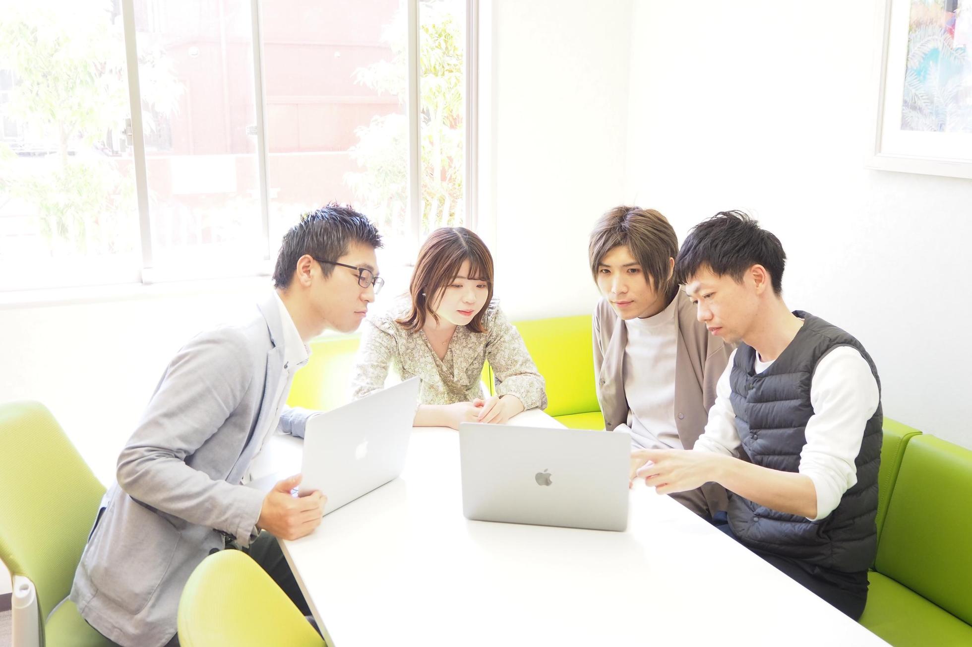 よくメンバーが一緒に集まり、情報共有や相談をしています。未経験で入社したエンジニアも多く在籍しており、チーム一丸となって成長できる環境があります!