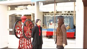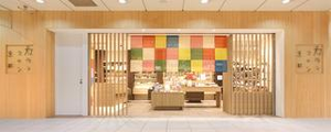 スーベニール事業の基幹ブランドである「カランコロン京都」の店構え。京の花街文化を彷彿とさせる色合いの暖簾が印象的です。ブランド毎の世界観を大切にしています。