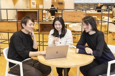 カフェのような雰囲気の中、開発しています。リモートワークも積極的に利用されています。